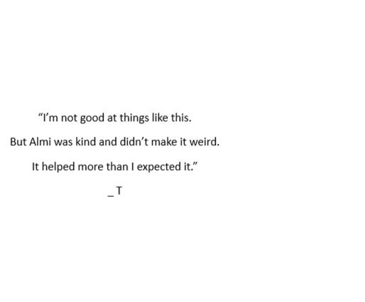 "I’m not good at things like this, but Almi was kind and didn’t make it weird. It helped more than I expected."— T